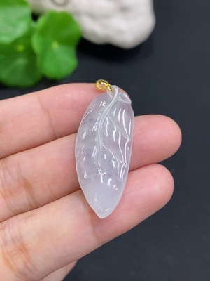 F24779300 Jadeite Leaf Pendant with 18K Gold Clasp, Total Weight Approx. 3.3g
