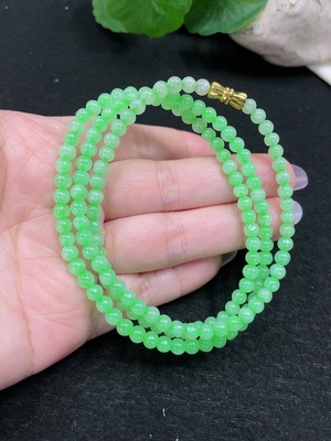 F33917821 Jadeite Bead Necklace Approx. 4.4mm Total Weight Approx. 19.5g (Non-Gold Inlaid) (Cord Affects Color)