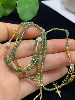 F35095562 Jadeite inlaid bead chain non-gold