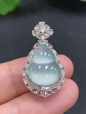 F29411803 Jadeite inlaid gourd pendant 18k with diamond, total product weight about 1.53g