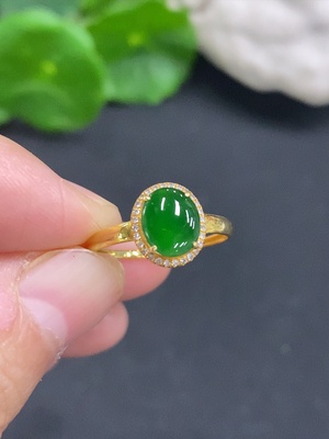 F37354400 Jadeite cabochon ring in 18K gold size 13 total weight approx.1.3g (with diamond accents)