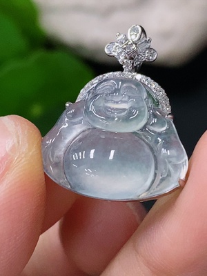 F35109238 Jadeite Buddha Pendant with 18K Gold Clasp and Diamond Accents, Total Weight Approximately 5.47g
