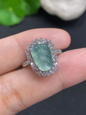 F27085910 Jadeite Leaf Inlaid Ring, Adjustable Size, Non-Gold Inlaid, Total Weight Approx. 3.6g