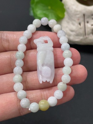 F34059056 Jadeite Pendant + Bracelet Approx. 5.8mm Beads