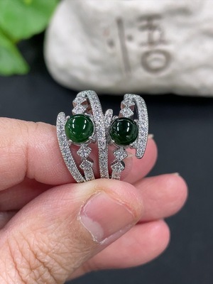 F35190965 Jadeite Cabochon Ring, Non-Gold Setting, Adjustable Size, Total Weight Approx. 3g