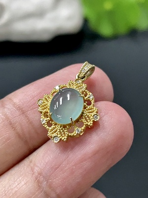F28259944 Jadeite Cabochon Pendant with 18K Gold Setting, Total Weight Approx. 1.4g