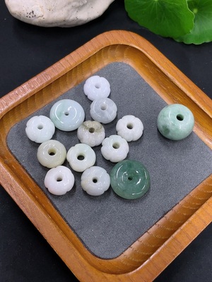 F38474399 Jadeite Beads Sell as a Lot Total Weight Approx.46.9g (Non-Grade A with Accessory Stones) (Mixed Stones)