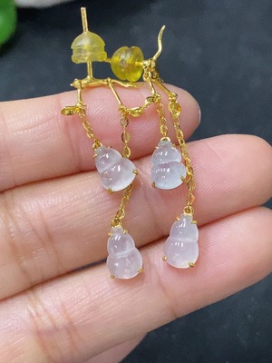 F36299395 Jadeite earrings with 18k gold, total weight approximately 2.63g