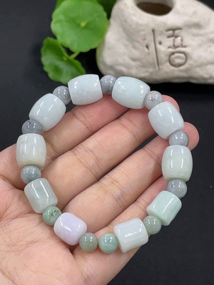 F37467905 Jadeite Beads Bracelet Approx.5.9mm Total Weight About 25.88g