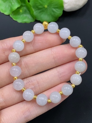 F27161271 Jadeite Beaded Bracelet Approx. 9.6mm Total Weight Approx. 2.2g with 99% Au Beads