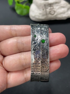 F34978783 Jadeite Cabochon Inlay Bracelet Non-Gold Inlay