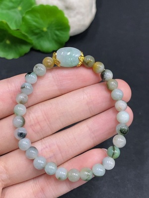 F34968442 Jadeite Bracelet Non-Gold Inlaid Total Weight Approx. 11.6g Size 5.7mm Yellow Bead Color Origin Undetermined Containing Other Minerals