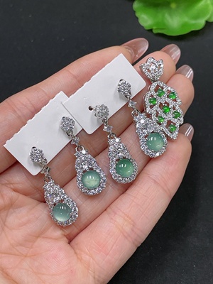 F32749415 Jadeite Inlaid Earrings Non-Gold