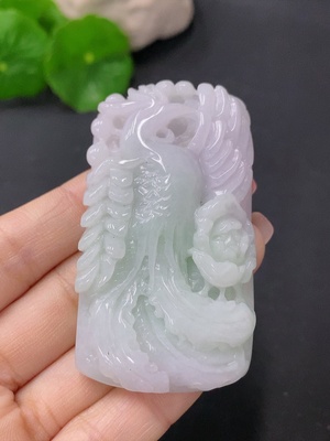 F27090107 Jadeite Pendant Phoenix Playing with Peony Total Weight Approx. 59.96g