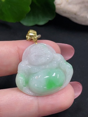 F37445581 Jadeite Buddha Pendant with 18K Gold Clasp, Total Weight Approx. 7g