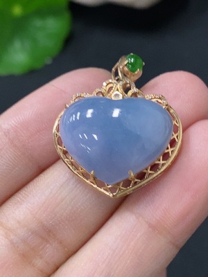 F33829737 Jadeite Heart Pendant with 18K Gold and Diamond Accents, Total Weight Approximately 4g