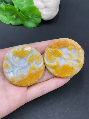 F37419964 Jadeite Button Pendants Sell as a Lot Non-Gold Inlaid
