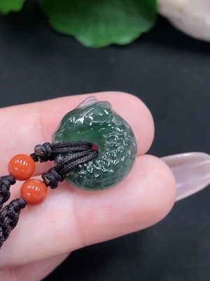 F27093394 Jadeite Lotus Leaf Fish Pendant (Color Origin Undetermined)