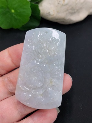 F38512043 Jadeite Floral Plaque Pendant Total Weight Approximately 27.7g