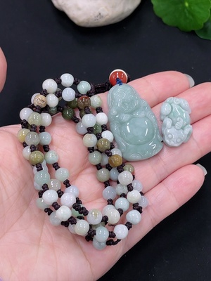 F38511611 Jadeite Pendant with Bead Strand Sell as a Lot (Beads Not Grade A)