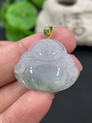 F37445559 Jadeite Buddha Pendant with 18K Gold Clasp, Total Weight Approx. 4.77g