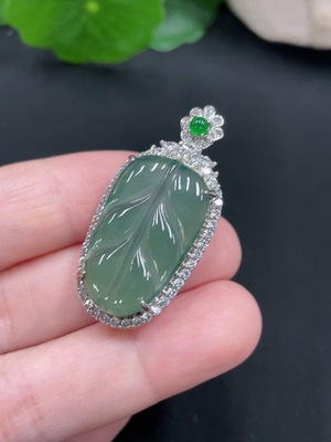 F28293910 Jadeite Leaf Pendant Total Weight About 6.5g (Non-Gold Inlaid) (Matching Beads Non-Grade A)