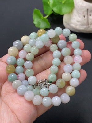 F35146096 Jadeite Bead Necklace Approx. 7.7mm Total Weight Approx. 56.69g Non-Gold Clasp Non-Grade A Beads With Impurities