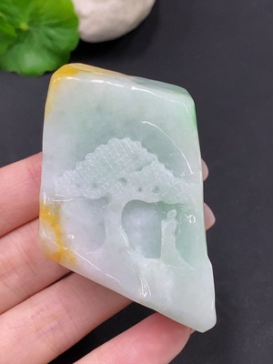 F27124722 Jadeite Pendant with Pine Tree and Gathering Friends