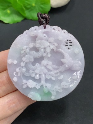 F30555155 Jadeite Magpie on Plum Blossom Pendant