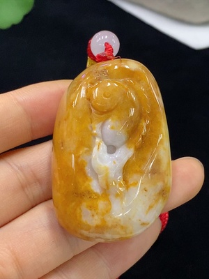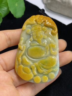 F38495288 Jadeite Pendant, God of Wealth, Total Weight Approx. 66.24g (Including Rope Weight), With Non-Grade A Stones