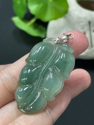F35172524 Jadeite Leaf Pendant Non-Gold Inlaid Total Weight Approx. 8g