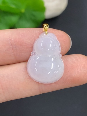 F37429327 Jadeite Gourd Pendant with 18K Gold Clasp, Total Weight Approximately 2.6g