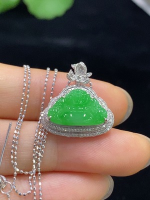 F32708358 Jadeite Buddha Pendant Set with 18K Gold and Diamonds