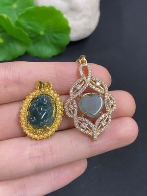 F38515924 Jadeite Inlaid Pendant Sell as a Lot Non-Gold Inlaid