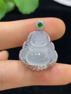F37361930 Jadeite Buddha Pendant 18K Gold Total Weight Approx. 5.2g (With Diamond Accents)