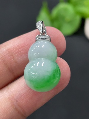 F35109577 Jadeite Gourd Pendant Total Weight Approx.3.5g 18k Gold Clasp with Diamond Accents