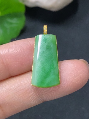 F35141446 Jadeite Plain Pendant with 18k Gold and Diamond Accents, Total Weight Approx. 1.91g