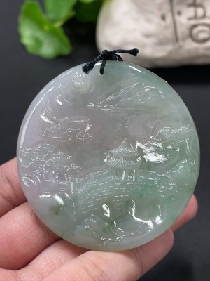 F37393283 Jadeite Landscape Pendant Total Weight Approx. 32.8g With Non-Grade A Beads