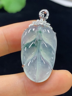 F35134532 Jadeite Leaf Pendant with 18k Gold and Diamond Accents, Total Weight Approximately 4.42g