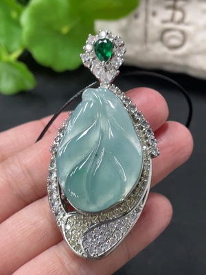 F37348712 Jadeite Leaf Inlaid Pendant Non-Gold Inlaid Total Weight Approx. 21.35g
