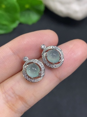 F37382904 Jadeite Cabochon Stud Earrings Non-Gold Setting Total Weight Approx. 2g
