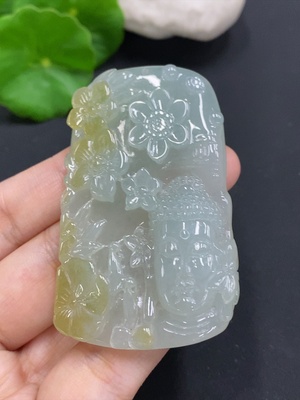 F34041882 Jadeite Pendant Floral Blossom and Prosperity