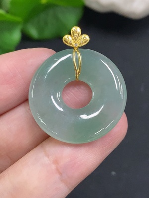 F21392136 Jadeite Guanyin Pendant (18K Gold Clasp) Total Weight 11.259g