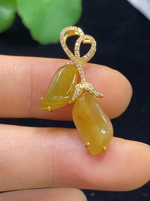 F32800590 Jadeite Plain Pendant Inlaid Pendant 18k Gold Inlaid Containing Other Mineral Components Total Weight Approximately 1.97g