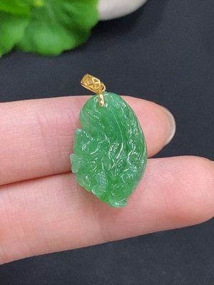 F35107056 Jadeite Leaf Pendant with 18k Gold Clasp, Total Weight Approximately 5g