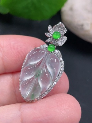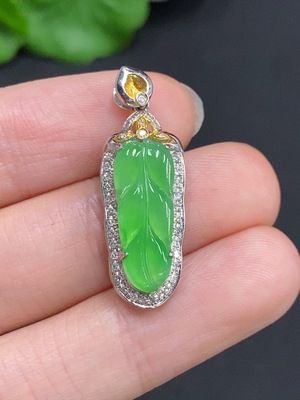 F36252707 Jadeite Leaf Inlaid Pendant 18K Gold with Diamond Accents Total Weight Approx. 2.37g