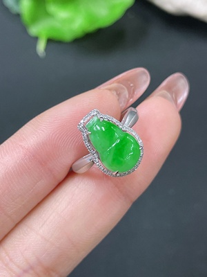 F37374217 Jadeite Ring 18k Gold Set with Diamonds Total Weight Approx. 2.75g Size 11