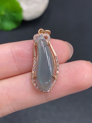 F37395935 Jadeite Bean Pendant with 18K Gold and Diamond Accents, Total Weight Approximately 1.62g