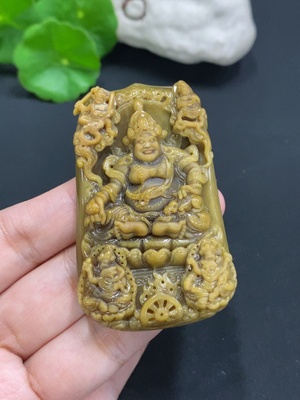 F30553941 Jadeite Yellow Jambhala Pendant, total weight approx. 56.8g (color origin undetermined)