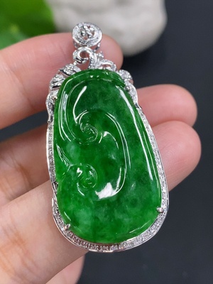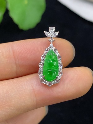 F37394790 Jadeite Bean Pendant with 18K Gold and Diamond Accents, Total Weight Approximately 1.9g